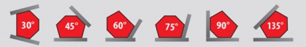 - Серия MAG 613/614/615 – неотключаемые ферритовые фиксаторы. Шестиугольная форма угольника обеспечивает шесть фиксированных углов установки. Самый мощный угольник в серии гарантирует надежную фиксацию при усилии на отрыв от 11 до 34 кг. Углы 30°, 45°, 60°, 75°, 90°, 135°. Стоимость магнитных фиксаторов этой серии – около 800 руб.