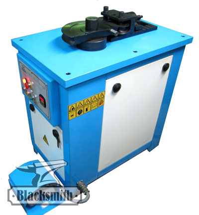 Электрический трубогиб BlacksmithTG3, исспользуется для гибки металлических водо/газо-проводных труб по фиксированному радиусу. и сортового проката методом обкатки в холодном состоянии. Оснащен электронным счетчиком. укомплектован 5 наборами оправок для круглых труб диаметром: 15 мм R=64 mm, 21,3 мм R=80 mm, 26,8 мм R=100 mm, 35 мм R=130 mm, 42,3 мм R=130 mm. Максимальная толщина стенки 2,5 мм. Привод не требует обслуживания.