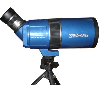В данной модели окуляр расположен под 45 градусов к горизонту для более комфортного наблюдения за небесными объектами. Предусмотрена выдвижная бленда окуляра для эксплуатации прибора в очках. Фокусировочный маховик расположен справа на тубе прибора. В комплекте поставляется труба со штативом. Обратите внимание! Прибор дает прямую картинку - не переворачивает изображение! Navigator 25-75x65 - это прибор, предназначенный для наблюдения за небесными телами, удаленного ландшафтного исследования, успешно применяется в тирах и на стрельбищах.