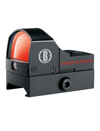 Новинка 2012 года – рефлекторный прицел First Strike, собранный в легком и компактном корпусе. Имеет красную точку, что наиболее эффективно для быстрого нахождения цели и наиболее меткого ее поражения. В указанной модели увеличен срок работы от батарей за счет автоматической подстройки яркости точки в зависимости от условий освещенности и отключения питания при закрытии защитной крышки.