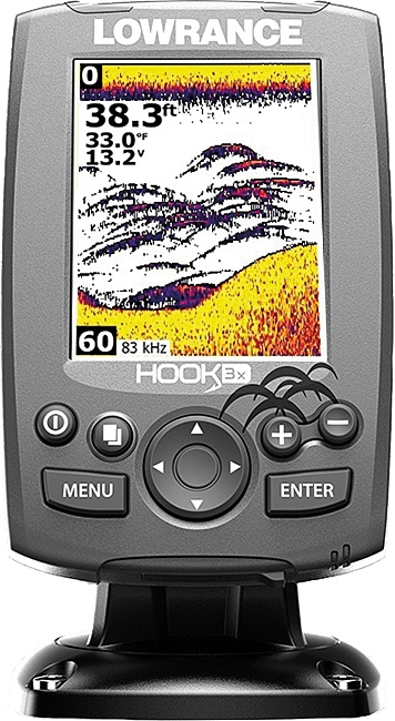 Lowrance HOOK-3x - новинка 2016 года с ярким 3,5 дюймовым цветным экраном, двухчастотным датчиком (83/200 кГц Skimmer®), мощностью 180 Вт RMS. Прибор обладает глубиной локации до 244 метров и оснащен сонаром Broadband Sounder с ASP (система фильтрации помех). Яркий экран обеспечивает максимальную четкость, позволяющую увидеть все детали при любых условиях! Передовая технология Lowrance Broadband Sounder, HOOK 3x позволяет рыболовам быстро и легко определить рыбу, рельеф и структуру дна, термоклин и прочее. Предусмотрена функция Fish I.D., которая отображает рыбу на экране в виде иконок рыб, вместо арки, и включает в себя также звуковое оповещение. Система ASP (Advanced Signal Processing) снижает необходимость ручной настройки параметров для обнаружения рыбы, увеличивая при этом резкость изображения структуры и детализацию поверхности дна. Простота в использовании кнопки страницы позволяет пользователям быстро переключаться между частотами сонара 83 кГц и 200 кГц, а клавиши быстрого доступа помогут быстро увеличить в 4 раза стандартный вид экрана. Кнопка питания также управляет подсветкой, и способна настроить прибор для дневной или ночной рыбалки. Дизайн корпуса и крепления позволяет легко установить эхолот и осуществлять простую настройку угла наклона дисплея.